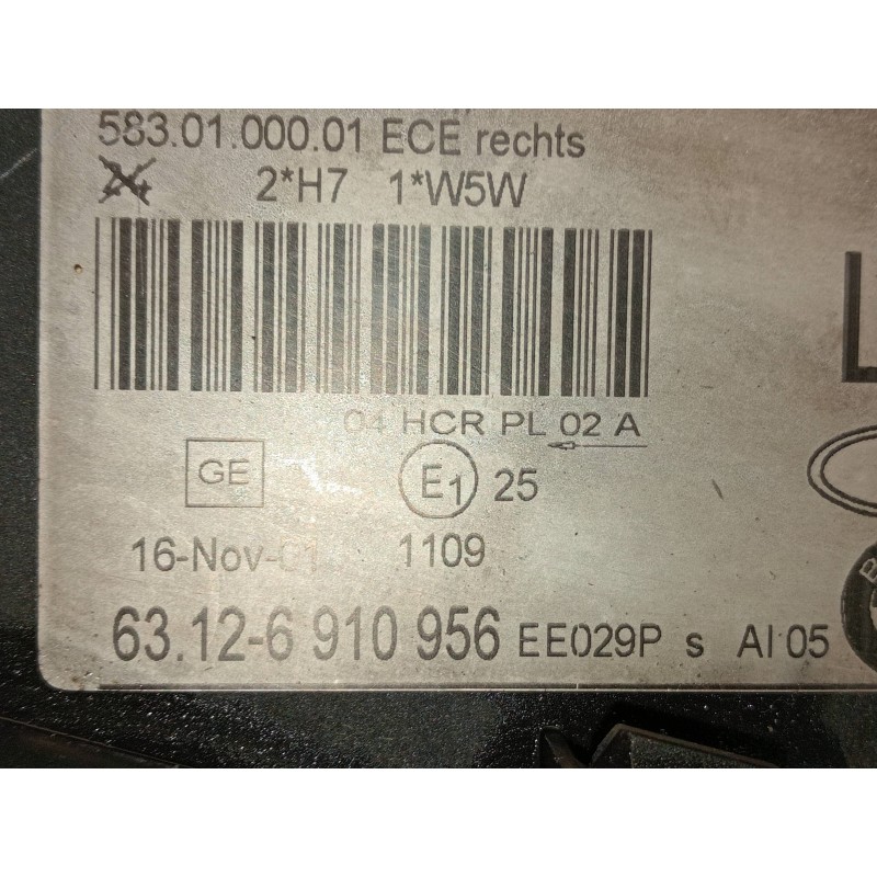 Recambio de faro derecho para bmw serie 3 touring (e46) 320d referencia OEM IAM 63126910956 PARA PULIR TOURING